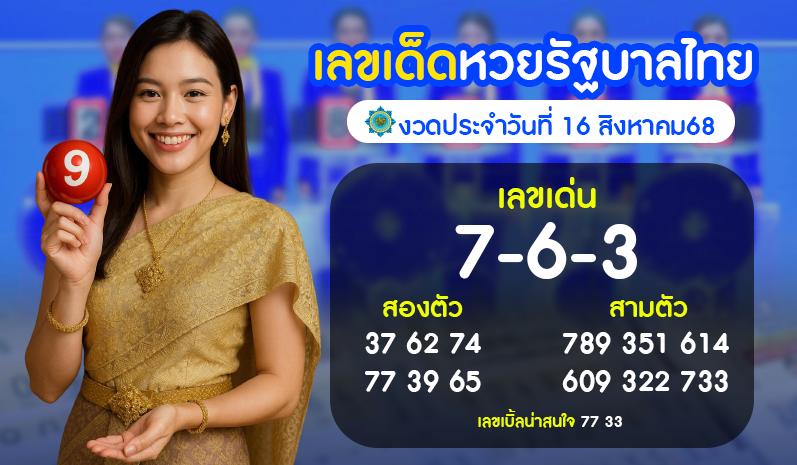 เลขเด็ดหวยรัฐบาลไทยงวดประจำวันที่ 16 สิงหาคม 68 วิเคราะห์เลขดัง พร้อมแนวทางจากเซียนชื่อดัง